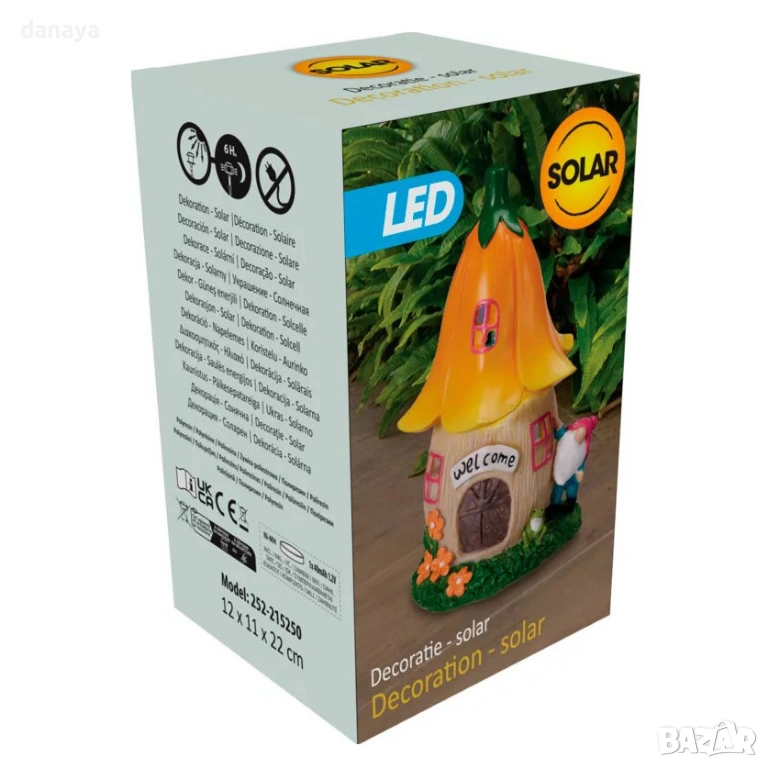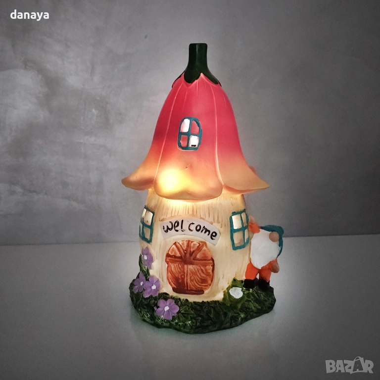 Работи изцяло със слънчева енергия – през деня се зарежда автоматично, а вечер светва сама, без нужда от кабели или ток. Меката светлина създава приятно осветление и прави градината още по-приветлива.