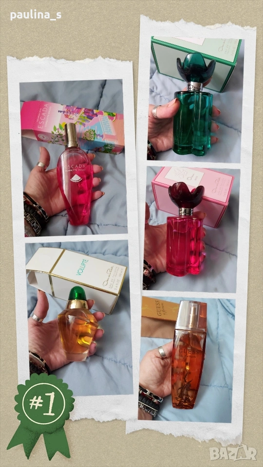2️⃣ Колаж / "Volupte" by Oscar de la Renta / 100ml EDT. Цената е крайна, без пазарлъци 48 евро. Дамски дизайнерски парфюм с доказано качество, част от личната ми колекция. Пълна презентация, продукт с кутия, бач код NE10. Много голяма трайност и сияж. Old school тип парфюм, продукт на София Гройсман, различим, Воларе на Орифлейм е вдъхновен от него. Липсват 2 фъса за проба, нов! Цената е крайна!
