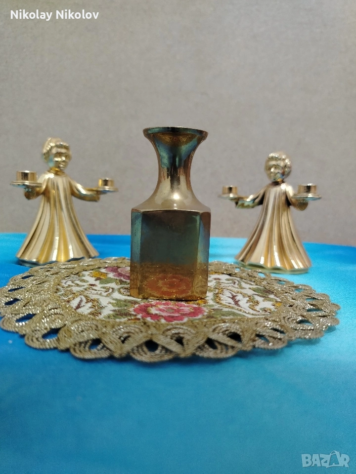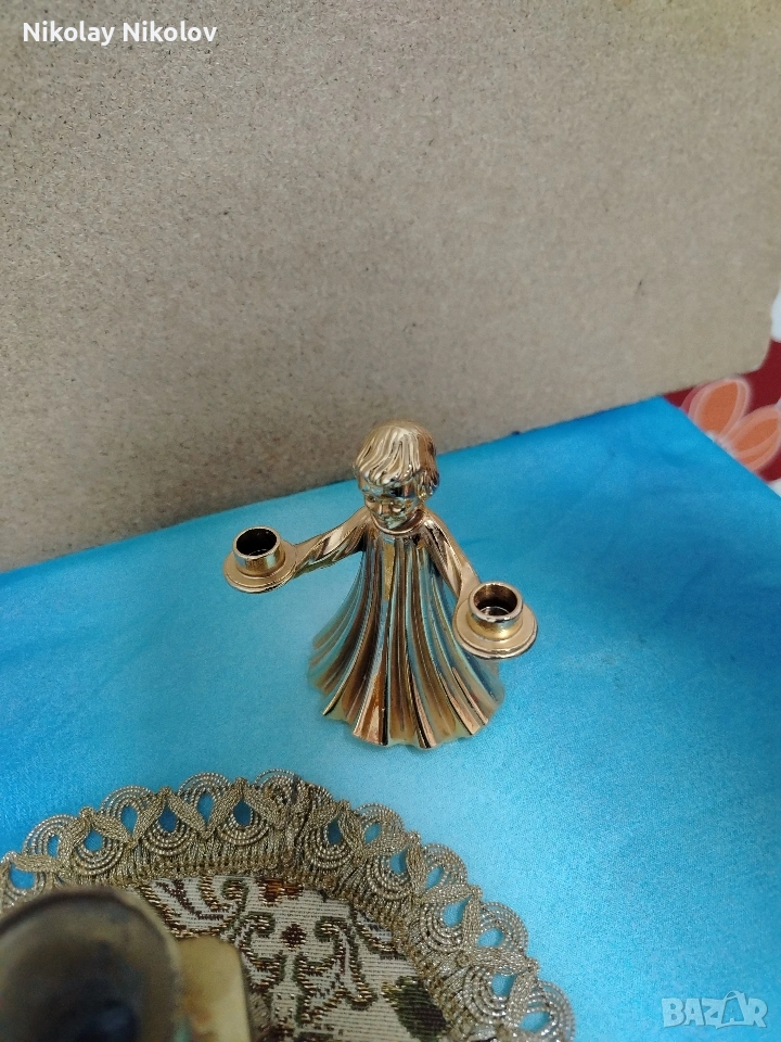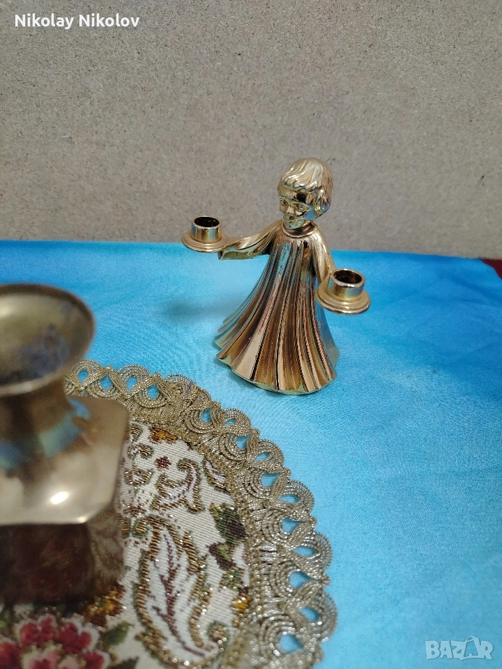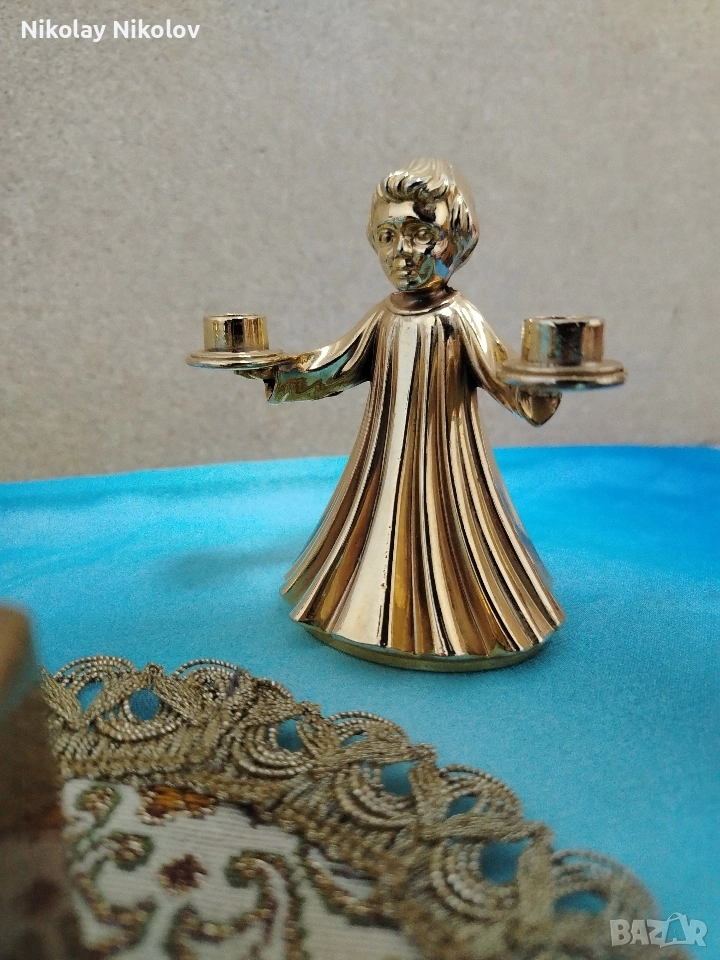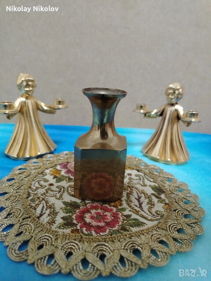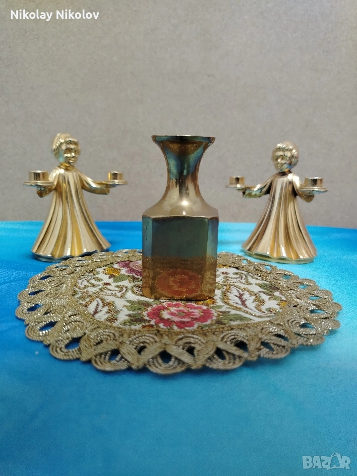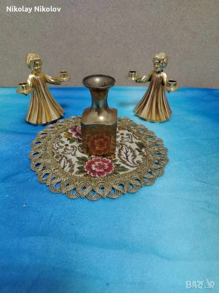 Прекрасна изработка на винтидж месингови двойни свещници два броя във формата на Ангел и мини вазичка без абсолютно никакви забележки или драски