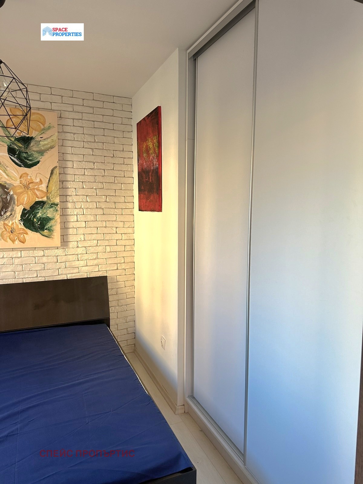 Агенция Спейс пропъртис предлага двустаен апартамент под наем, ситуиран на пети етаж от осем в луксозна сграда на ул. Казбек в ж.к. Манастирски ливади-запад. Жилището е с квадратура от 36 кв.м разпределени както следва: антре с голям гардероб, спалня с двукрилен гардероб, дневна с френски прозорец, кухненска част оборудвана с всички необходими ел. уреди, включително съдомиялна, баня с тоалетна.