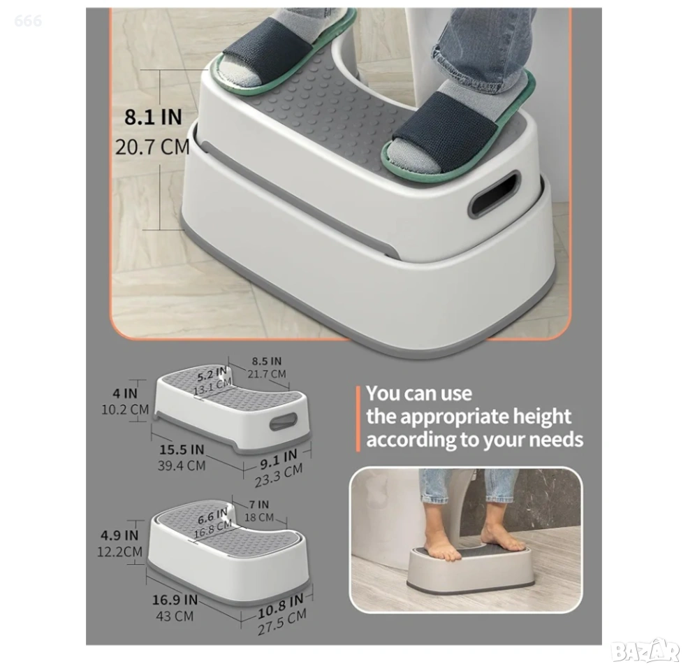ПОДОБРЯВА КОМФОРТА И ЕФЕКТИВНОСТТА НА ИЗХВЪРЛЯНЕТО: Стъпалката с дръжка ни помага да повдигнем краката си, за да образуваме най-разумния ъгъл, така че пуборекталният мускул да е в отпуснато състояние, спестявайки енергия и време.