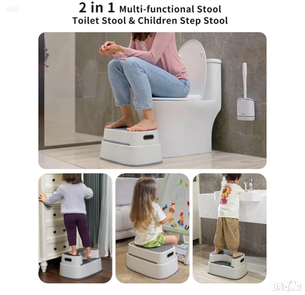 МНОГОФУНКЦИОНАЛЕН: Две табуретки могат да се използват по три начина - използвайте едната табуретка самостоятелно като тоалетна табуретка за възрастни; две табуретки, сглобени в същата посока като тоалетна табуретка за малки деца; две табуретки, сглобени в обратна посока като стъпало за детска стая. Монтажът е много лесен, просто щракнете краката на малката табуретка в вдлъбнатините в горната част на голяма табуретка.