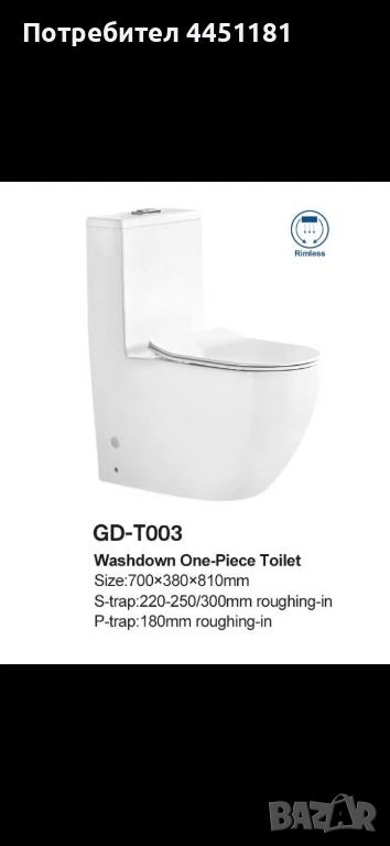 Моноблок с вградено казанче и задно оттичане → Обява 54017718