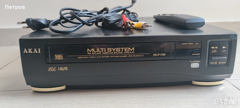Видео AKAI VHS модел VS-P1700 работещо чудесно в комплект с кабели и дистанционно.