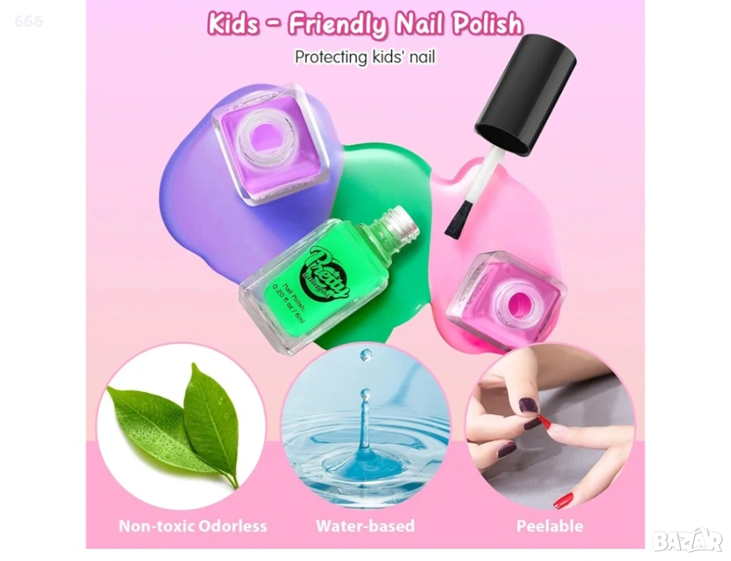 Детско студио за ноктопластика: Нетоксичен и безопасен за деца. Лак за нокти, който се отлепва, можете просто да отлепите изсъхналия лак, за да го премахнете от ноктите.