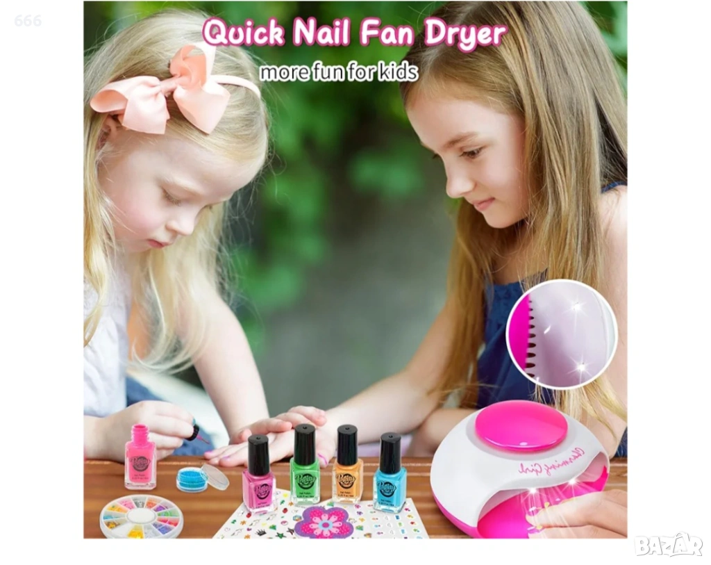 Децата могат да се насладят на процеса на маникюр и да получат красиви цветове, да разгърнат и да разпалят креативността на момичетата, да бъдат по-внимателни и тихи, когато го използват. Накарайте детето си да има различен красив маникюр всеки ден и направете детството му изпълнено с блестящи цветове!