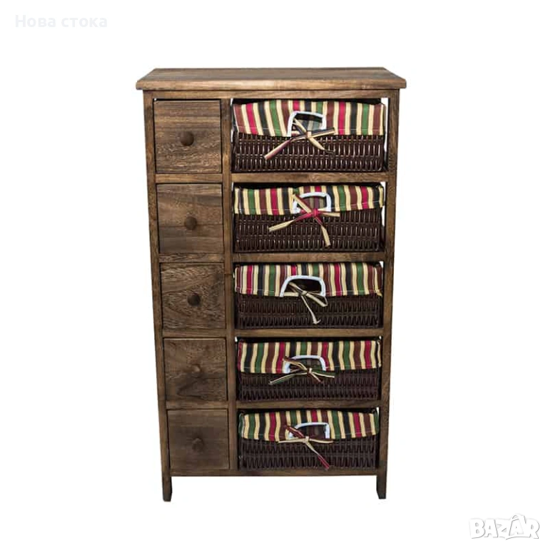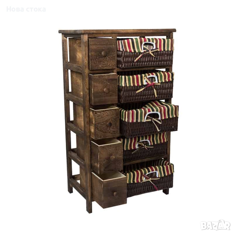 Олекотен дървен шкаф с 5 чекмеджета и 5 панера.