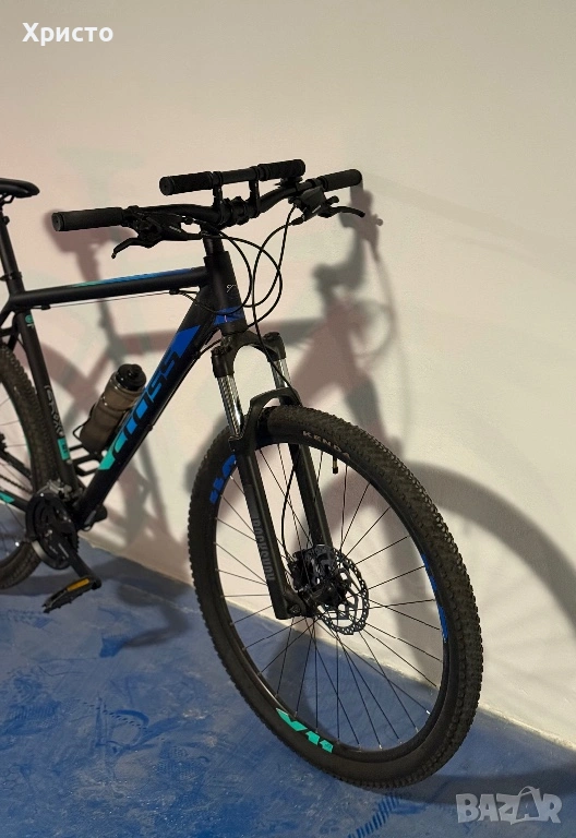 планински велосипед Cube Aim 27.5. Велосипедът е в много добро състояние, като реално е каран много малко – повече е стоял, отколкото да е използван. Това си личи както по външния вид, така и по компонентите.