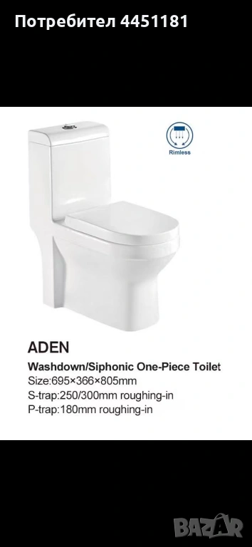 Моноблок с вградено казанче и задно оттичане → Обява 54018362