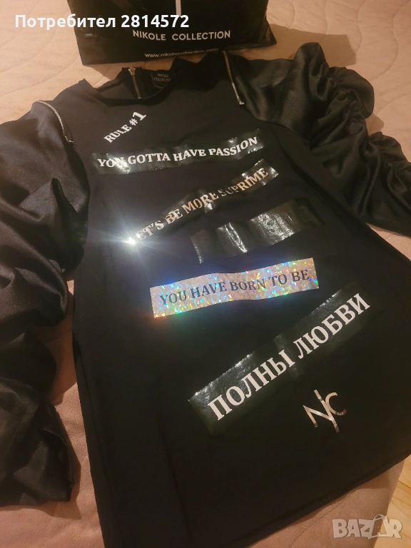 Нова дамска рокля на Nikole Collection, обличана един единствен път по повод, без забележки, страхотен ръкав, отзад има и цип,по етикет е XS,но определено би станала за S и М