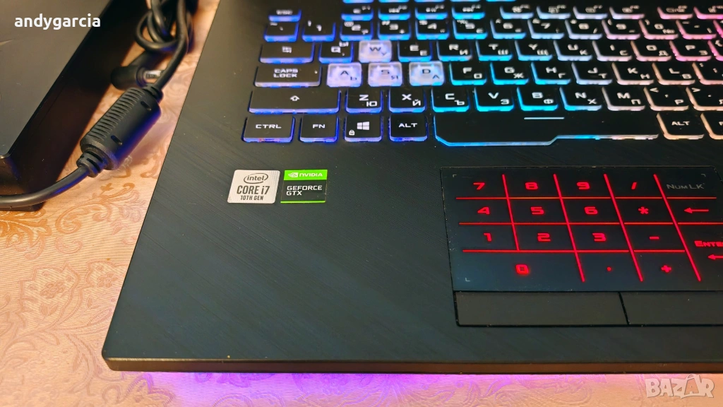 част и тъчпад, който с тъч бутон вдясно се превъряща в светещ numpad