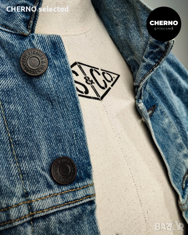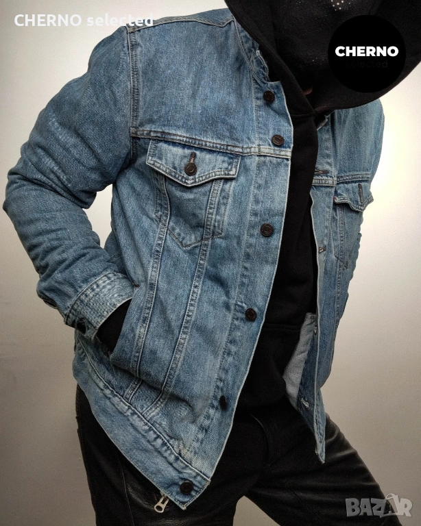 синьо дънково яке от Levi’s с емблематичен силует и характерни детайли.