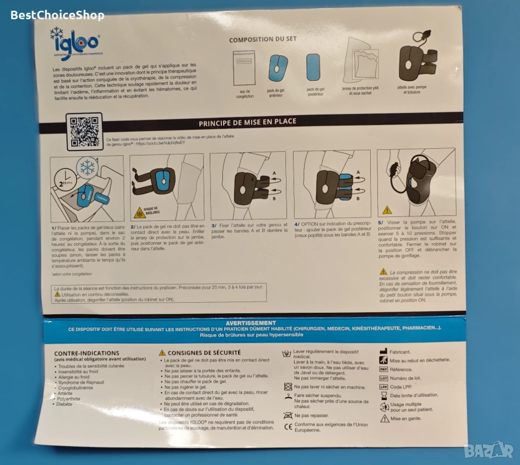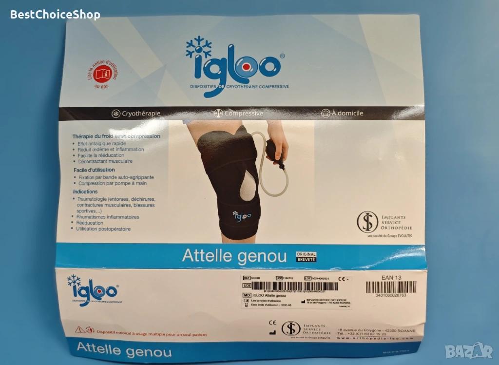 Проектирани за всички видове пациенти, криогенните шини Igloo® са гъвкави и оборудвани с велкро ленти, което ги прави перфектно регулируеми.