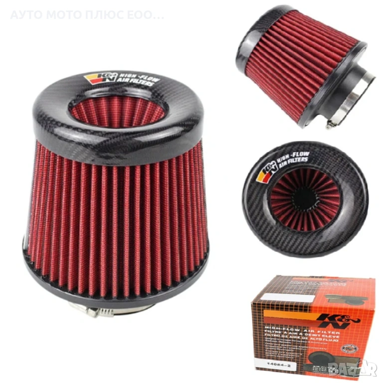 Универсален карбонов спортен въздушен филтър - Ф76 мм.