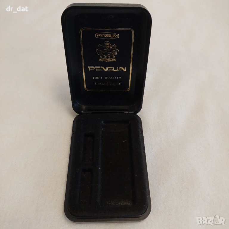 Необходимото допълнение за всяка колекционерска запалка. Вероято е за пиезо запалка на марката Penguin - една от разпознавемите японски марки. Запалките Penguin са винтидж японски запалки, работещи с бензин и бутан.произведени предимно от 1940-те до 1980-те години, често известни с копирането на американски стилове на Zippo, като същевременно създават свои собствени уникални, цветни дизайни. Популярно произвеждани през миналия век, тези произведени в Япония артикули са изключително колекционерски заради разнообразието си, включително модели от анодизиран алуминий, гравирани и сувенирни модели.
