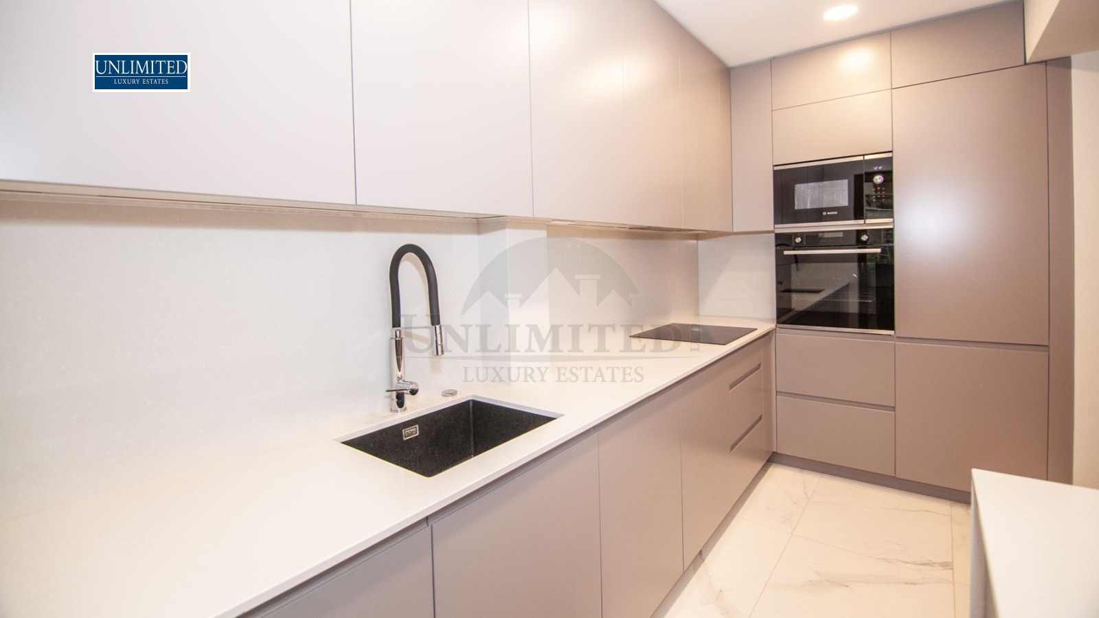The apartment is finished to a high standard with attention to every detail, featuring a contemporary design, clean lines, and abundant natural light.