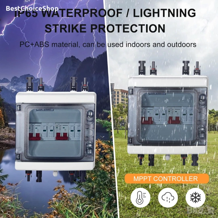 Безопасен и надежден: Защитата от пренапрежение осигурява защита от пренапрежение/претоварване/свръхток/мълния/късо съединение. Забележка: Ако индикаторът за мълниезащита свети червено, това означава, че е имало удар от мълния и модулът за мълниезащита трябва да бъде сменен навреме.