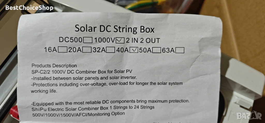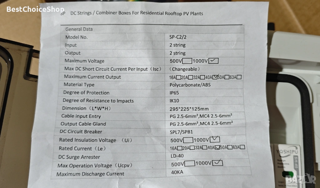 Широка гама от приложения: 2-струнната фотоволтаична разклонителна кутия е подходяща за захранване на фотоволтаични системи и автономни соларни системи за производство на слънчева енергия. Номинално напрежение V: DC1000/40A, брой полюси: 2P, изключвателна способност: 4 kA Ics=Icu. IP65 водоустойчива/прахоустойчива, може да работи нормално в различни тежки условия.