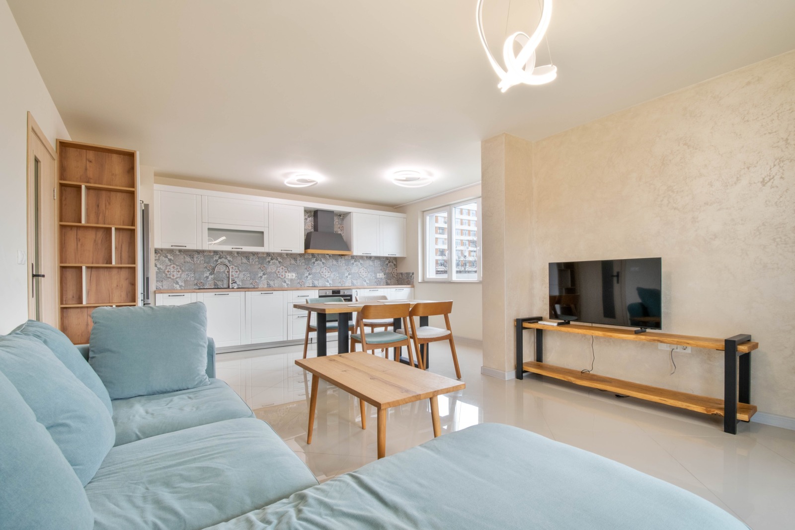 Жилището се състои от просторна дневна с кухня, две отделни спални, баня с тоалетна, коридор и тераса. Апартаментът е светъл, напълно обзаведен и готов за нанасяне.