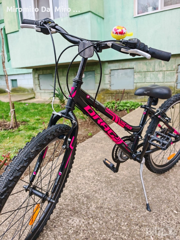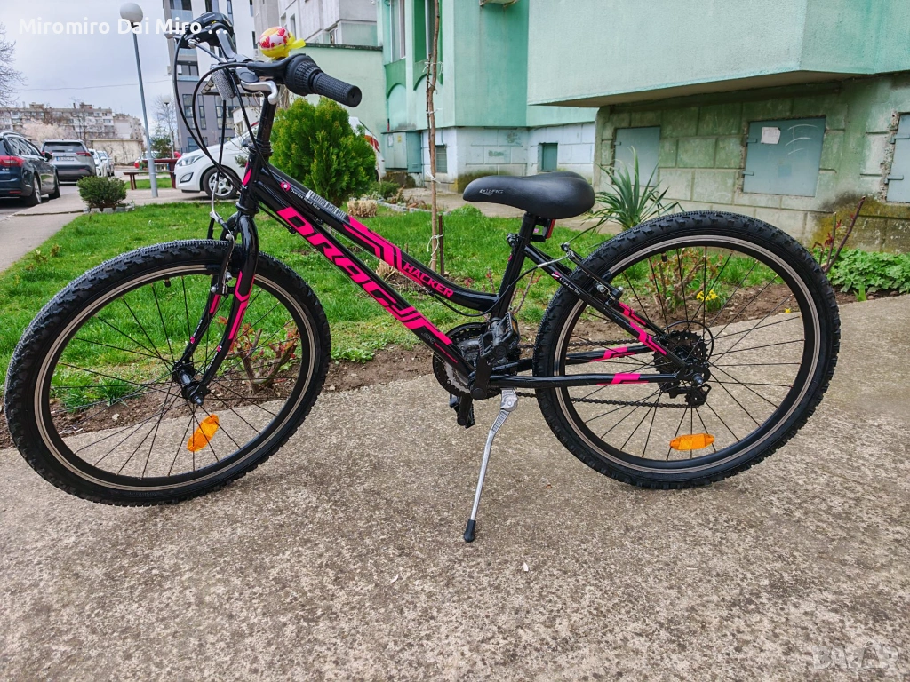 Здравейте, продавам на детето старото колело Drag 24 hacker lady, подходящ за малки госпожици. Колелото е изключително запазено, което се вижда от снимките и е подходящо за момичета от около 110-120см до към 160 см. Карано е малко тъй като след едно падане (от което се скъса и ръкохватката) така и си остана в мазето. Подходящо е както за градско каране така и за черен път. Моделът е специално създаден с “Kid Fit” дизайн на стоманената рамка, вилка издържаща на големи натоварвания, 3х6 скорости, V-brake спирачки и двустенни ръчно плетени капли. Скоростите и спирачките си работят безупречно. Коментар на цената е възможен, но в рамките на разумното разбира се.