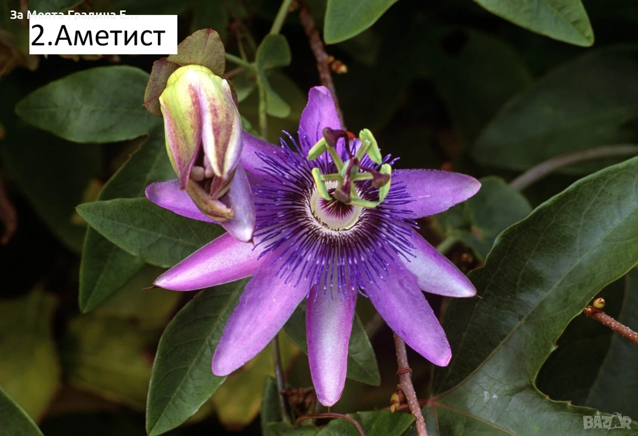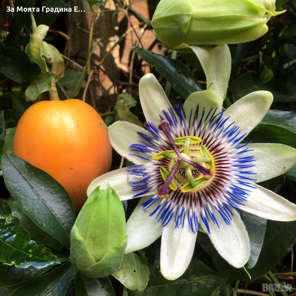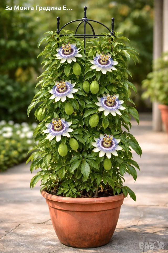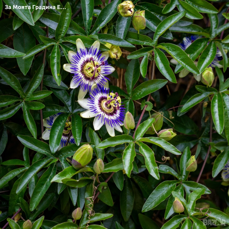 Пасифлора – изящна екзотика за вашата градина и тераса Налични 5 вида Цена за 1бр 11€ Пасифлората е впечатляваща увивна лиана с уникални, артистични цветове и нежен екзотичен чар. Подходяща е за отглеждане в градина, на балкон или в саксия, като създава усещане за тропически рай. Предлагани сортове: 1.Виктория – тъмно розови цветове с бяла тичинка. 2.Аметист – нежен розов цвят с елегантно излъчване. 3.Каерулеа – син цвят 4.Констанс Елиът – бял цвят 5.Пърпъл Хейз – тъмно лилав цвят с наситено и впечатляващо присъствие. ✔ Бързорастяща лиана ✔ Подходяща за перголи, огради и арки ✔ Обича слънчево изложение ✔ Лесна за поддръжка Пасифлората не е просто растение – тя е акцент, който привлича погледите и превръща всяко пространство в цветна приказка. Растенията са в в контейнери, което позволява засаждането им да се извършва почти целогодишно. Много от растенията променят вида си през периодите на своята вегетация, но тук в сайта със снимки се представят в най-атрактивния им вид. Повечето снимки в сайта ни покзват как ще изглеждат растенията след определен период и положени необходимите грижи. Моля разгледайте и другите ни растения в сайта.