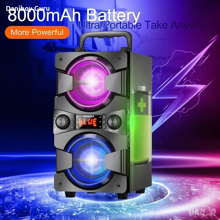 🎶 【Преносими безжични Bluetooth високоговорители】— Дълъг живот на батерията — Не позволявайте на липсата на захранване да съсипе събирането ви! Bluetooth високоговорителят TENMIYA A20 има вградена акумулаторна литиево-йонна батерия с капацитет 8000mAh, осигуряваща до 12 часа безупречен безжичен звук (разбира се, с пълно зареждане). Тази комбинация от страхотен звук и батерия с дълъг живот е най-доброто решение, идеално за парти, барбекю, къмпинг, пикник или всяко друго място, където искате да пуснете музиката си в движение.
