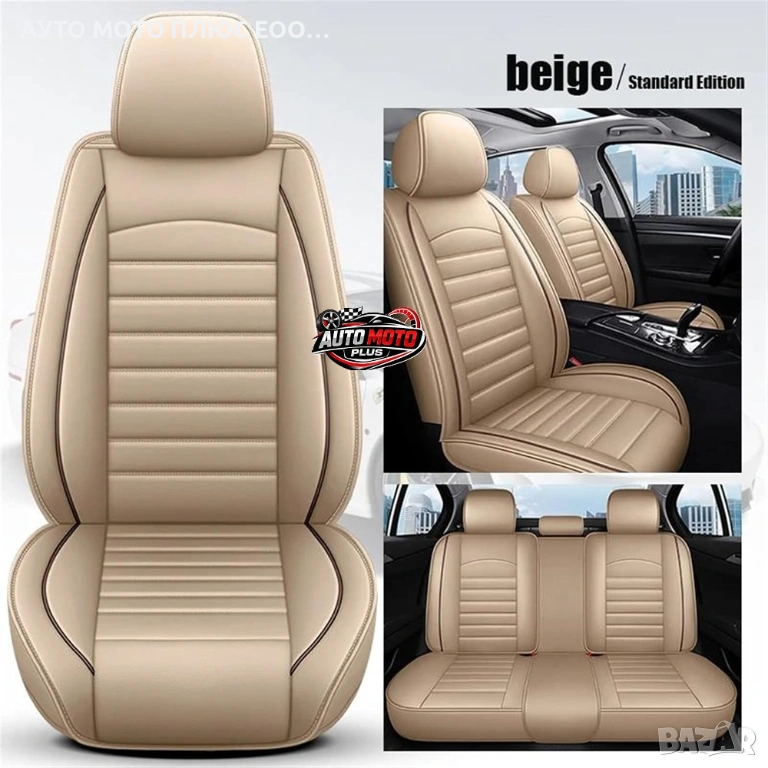 Комплект луксозна Кожена тапицерия за автомобил - Бежова/5 части. → Обява 54020077