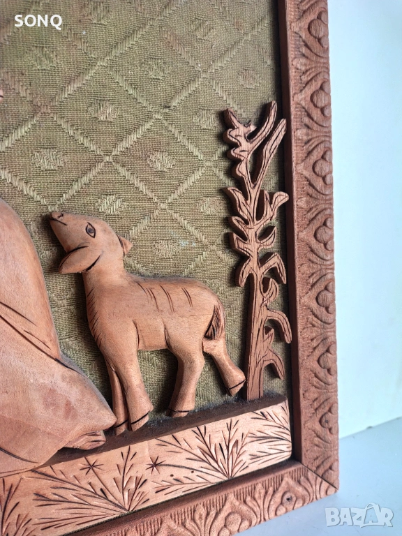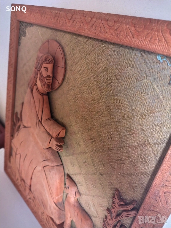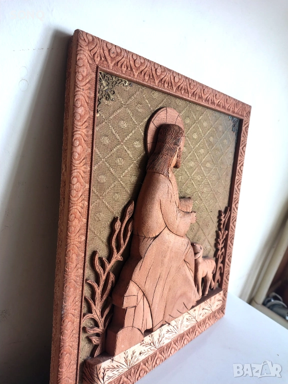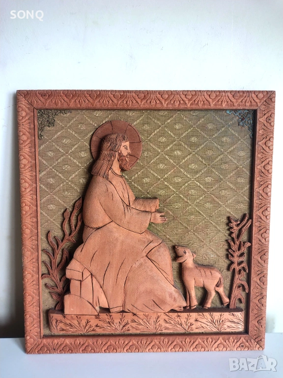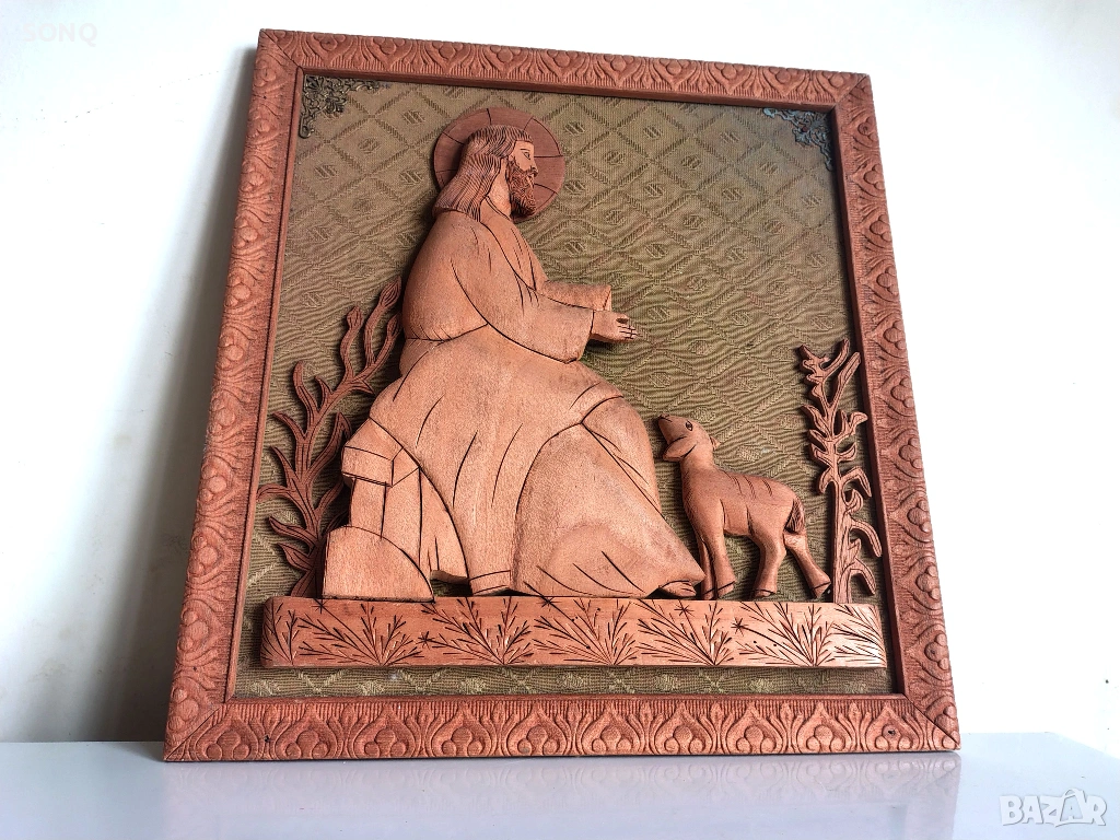 Прекрасна Стара Икона Дърворезба Исус Христос Добрия Пастир → Обява 54020199