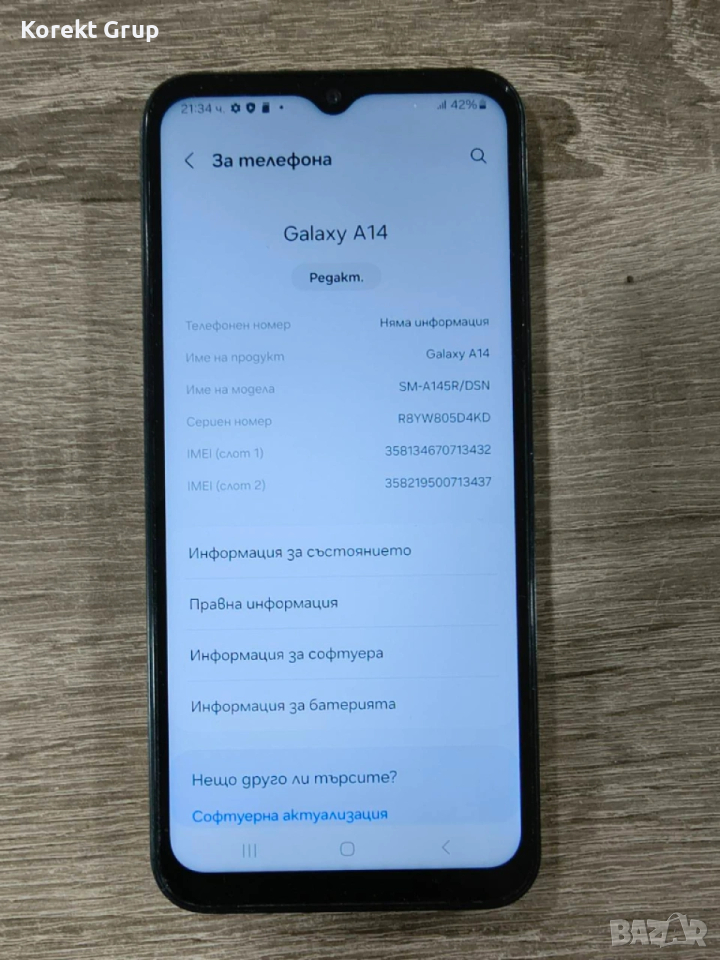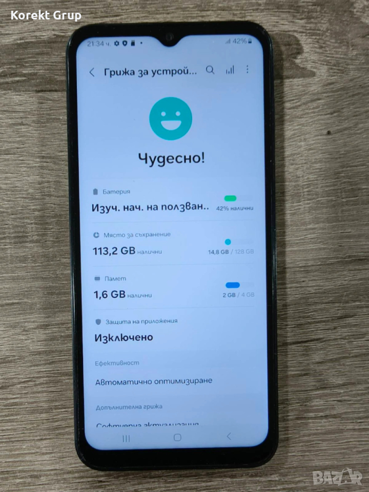 Samsung Galaxy A14 в много добро състояние без забележки по дисплея и по корпуса на телефона.Има 128гб вътрешна памет и 4гб рам памет за плавната и гладка работа на телефона.Може да се види на място за гр.Варна или да се изпрати по Еконт с преглед и тест..