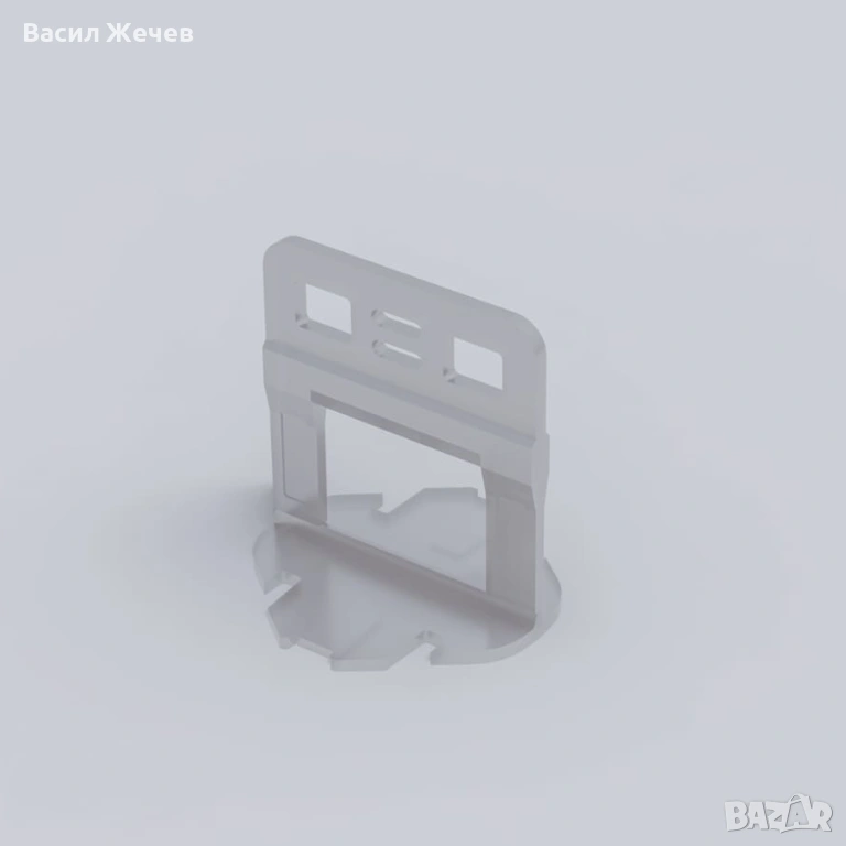 Прецизно изработена клипс основа за система за нивелиране на плочки, предназначена за лесно, бързо и точно подравняване при монтаж. Осигурява надеждно фиксиране на плочките и спомага за постигане на равна повърхност и еднаква фуга.
