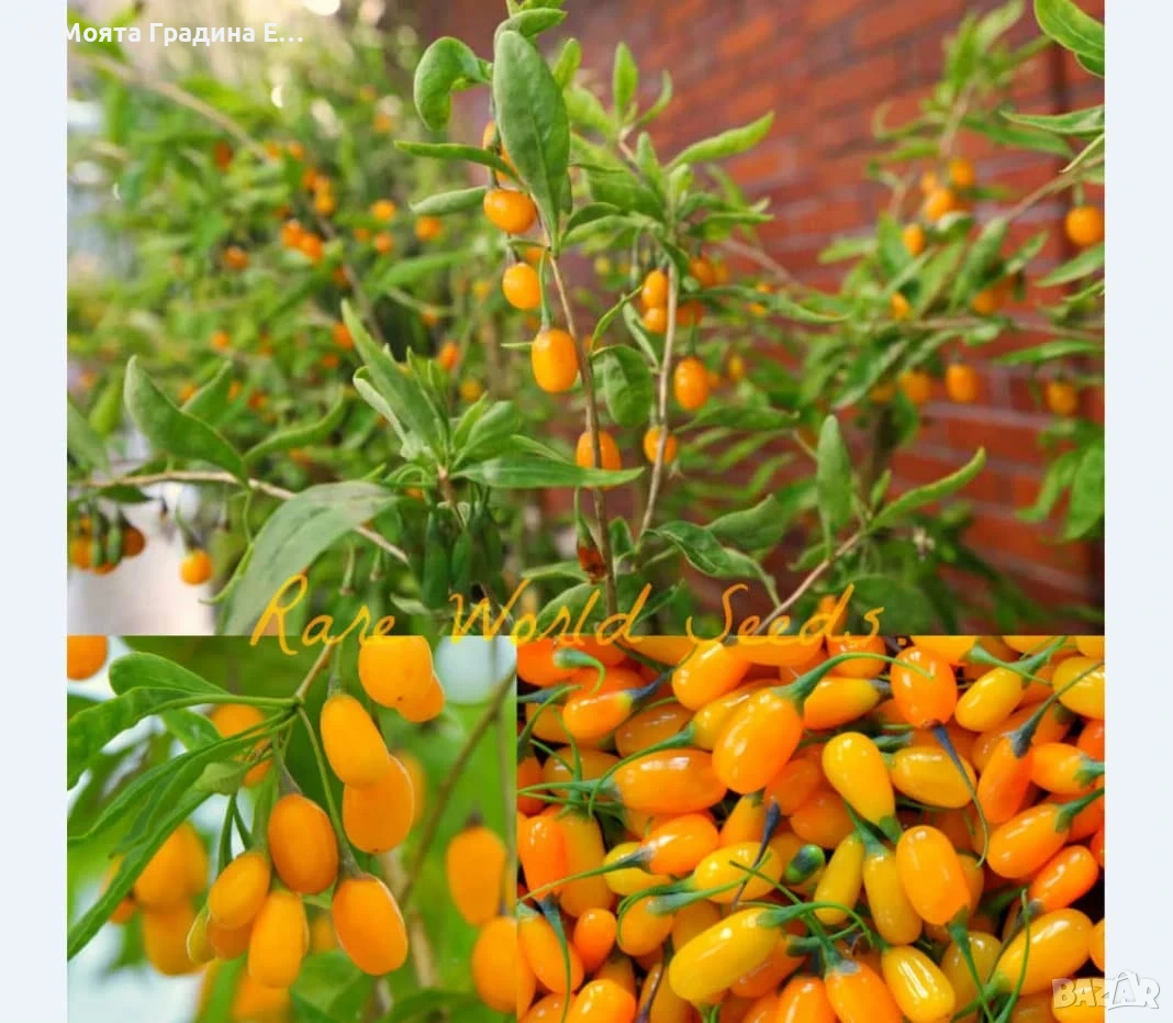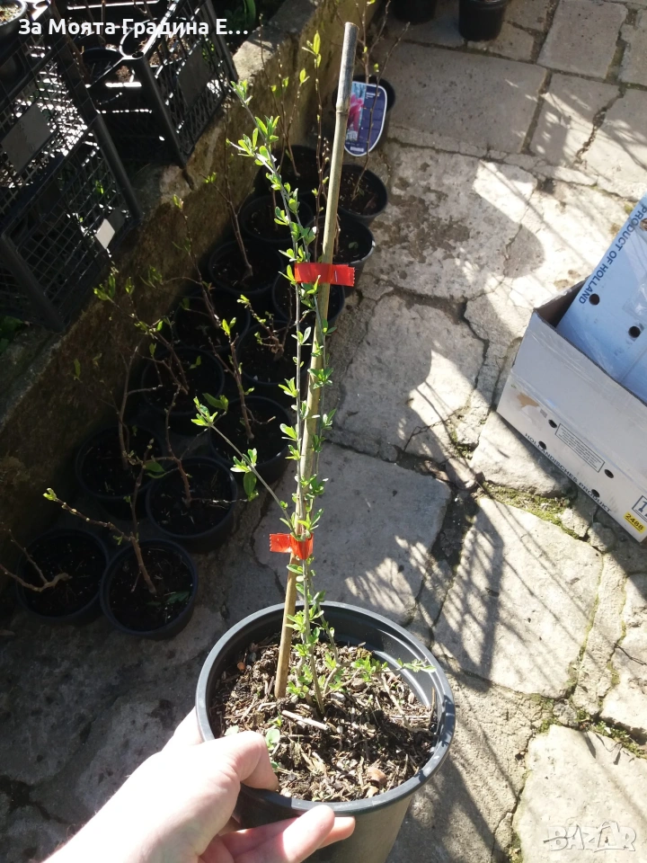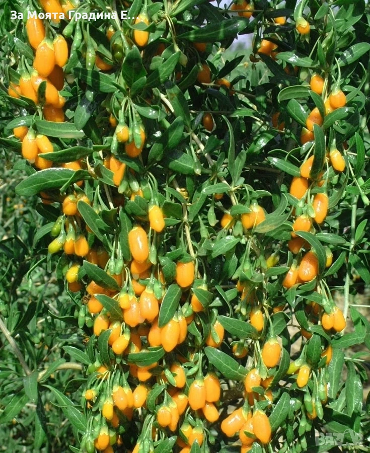 2️⃣Жълто Размер 15-25см 7 € Растенията са в в контейнери, което позволява засаждането им да се извършва почти целогодишно. Описание: Китайският лициум е добре разклонен храст от семейство Картофови. Той е много подобен на отглеждания нашироко у нас и подивял Lycium halimifolium (Lycium barbarum). Kитайският лициум има многобройни тънки, изправени леторасти и тясно елиптични, сивозелени и голи листа. Цветовете се появяват в пазвите на листата, а плодът е оранжева ягода. Има добре развита коренова система. Произхожда от Азия. Използван и тачен в китайската и тибетска народна медицина от дълбока древност до наши дни. Много голяма е популярността му в САЩ, където също е обект на култивиране. Напълно зимоустойчиво растение. Размер: Височина и ширина 2.5 – 3 м. Декоративност: Притежава декоративност, особено по време на цъфтеж, а също и на плодоносене, когато се отрупва с червени плодове. Цъфтеж: Цъфти през юни-август с лилави цветове. Отглеждане: Китайският лициум е непретенциозно растение. Вирее на всякакви почви – от бедни и песъкливи до тежки и глинести, от кисели до алкални. Единствено условие за успешното му отглеждане е мястото да е дренирано. Не понася сянка. Отглеждането му с цел ползване на плодовете предполага умерено поливане и торене през вегетацията за получаване на по-качествен и обилен урожай. Използване: Традиционнта употреба на сродния вид лициум у нас досега е била за живи плетове и борба с ерозията, особено на наклонени терени. Едва в последните години в Европа, а също и у нас лициумът започва да се цени заради ценните си лечебни свойства. Накратко, те са: изключително богатство на плодовете на аминокиселини (18 на брой), микроелементи (21 бр.), витамини (най-вече витамин А и витамин С, но също и много други), полизахариди и т.н. Консумирането на плодовете подобрява имунитета, забавя стареенет