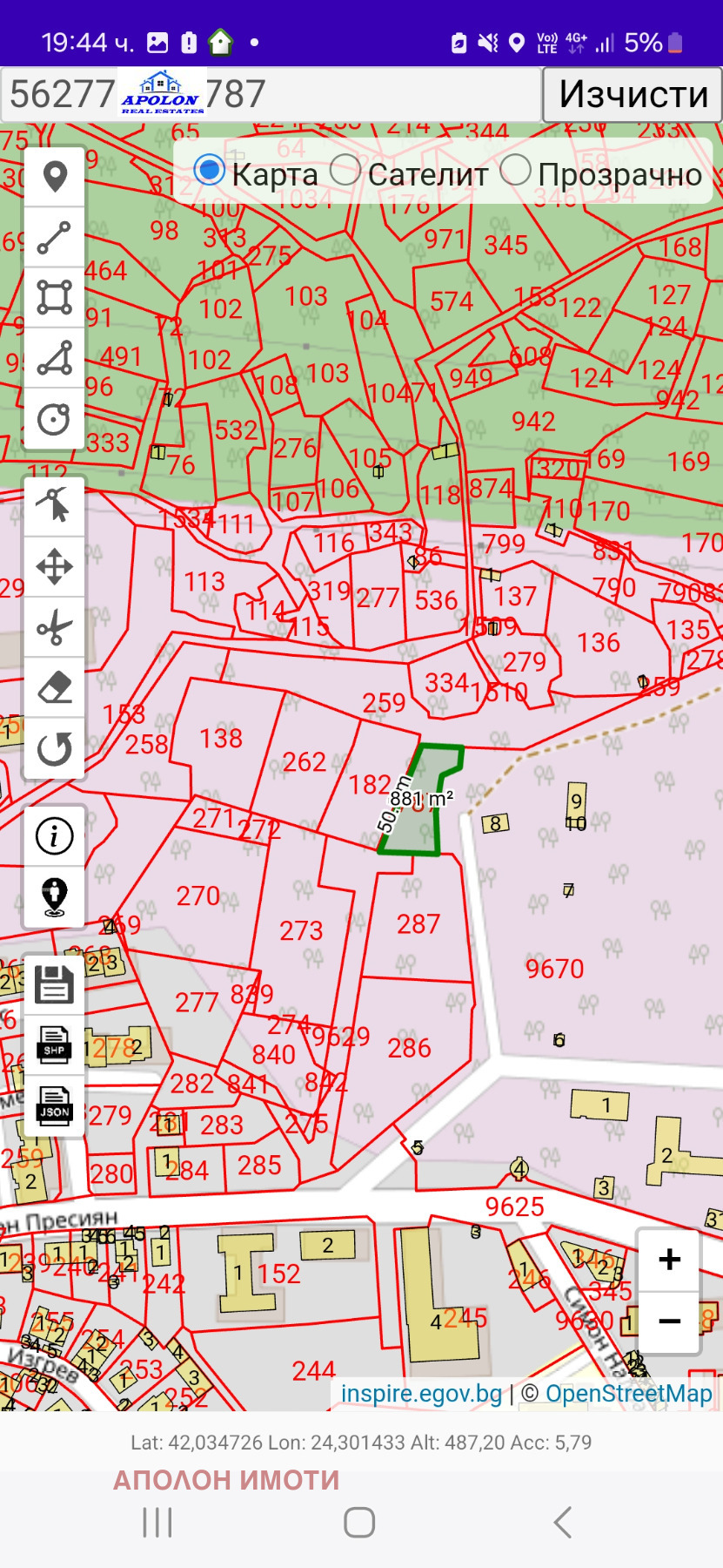 АПОЛОН ИМОТИ Предлага имот с ИД 846,Продава урегулиран парцел в гр.Пещера ,до Сокола ,с площ от 881 кв.м !
