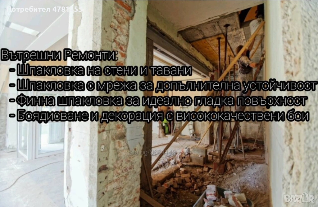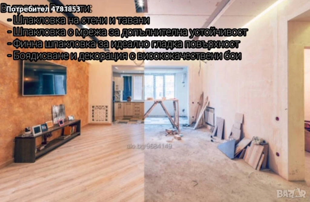 Услуги шпакловка и боядисване: