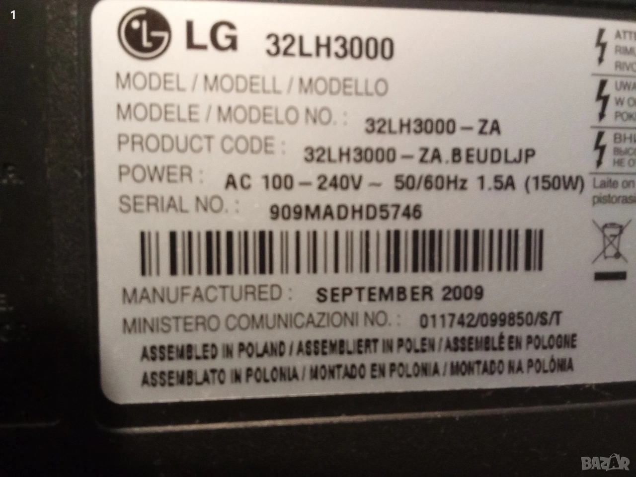 Търся платка захранване за телевизор LG → Обява 54021767