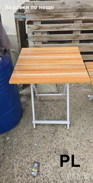 Малка маса: височина 55 см, плот 60 х 60 см – компактна и лесна за прибиране.