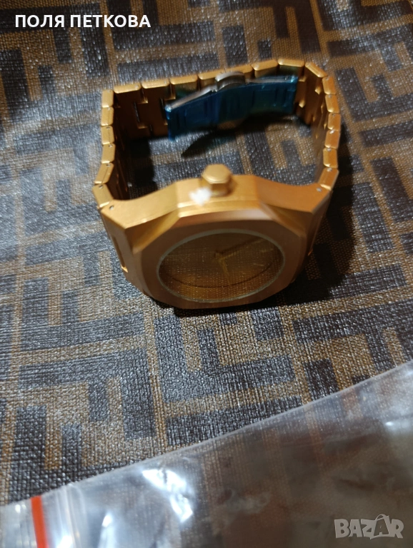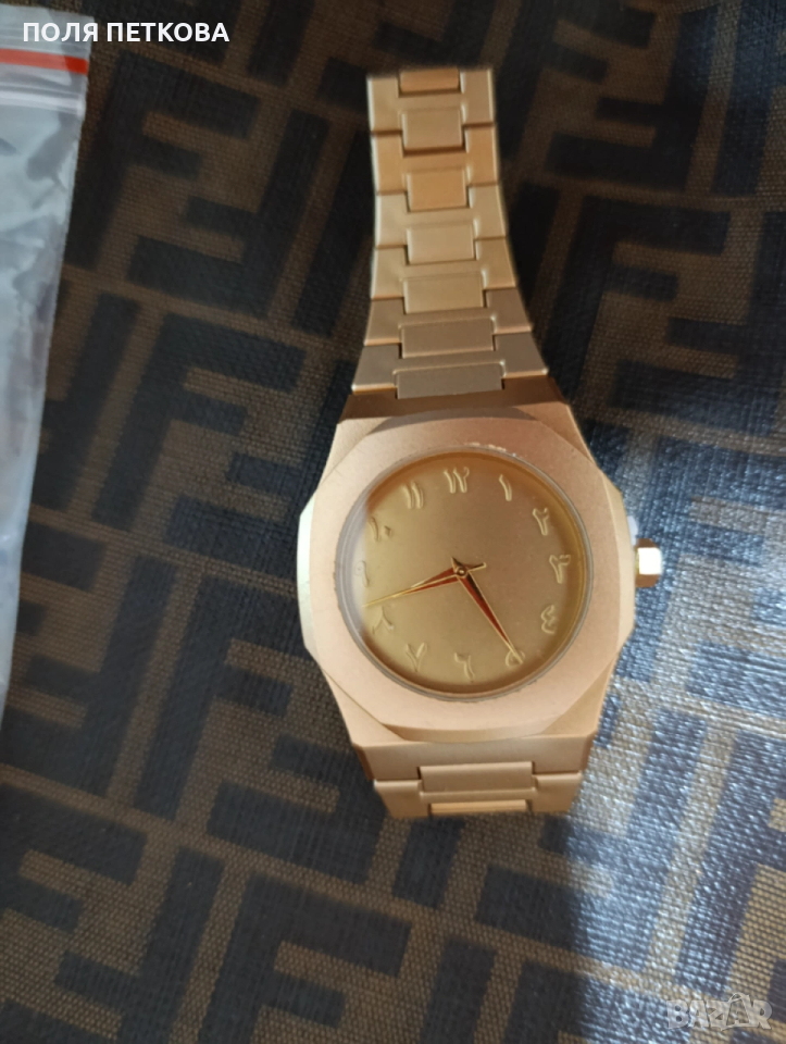 Нов часовник в златен принт часовникът е много лек и удобен имитира метал