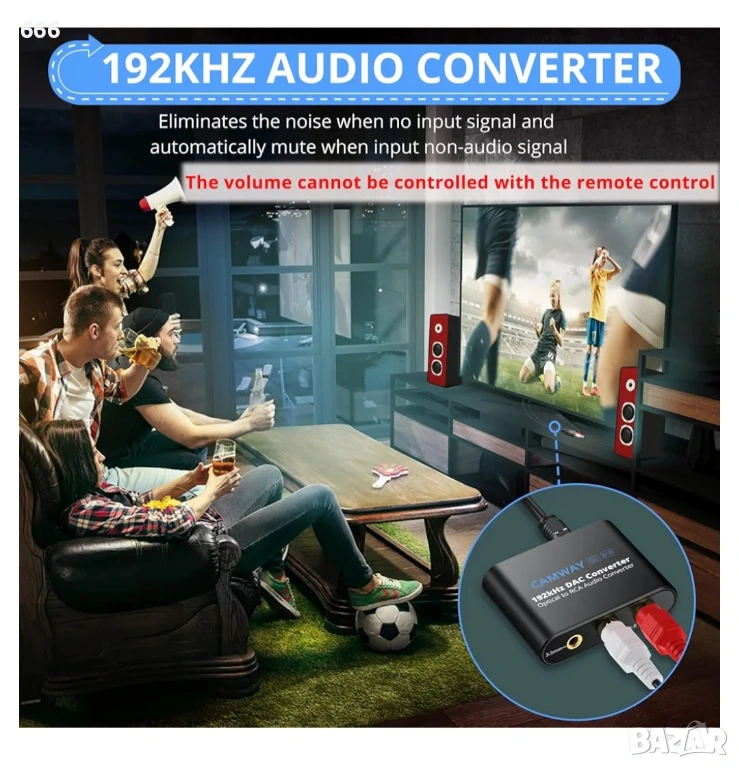 Оптичен към RCA + 3.5 мм конвертор: Цифрово-аналоговият конвертор CAMWAY преобразува SPDIF цифрови аудио сигнали в RCA и 3.5 мм аналогови аудио сигнали, за да отговори на нуждите за свързване на различни аудио устройства.
