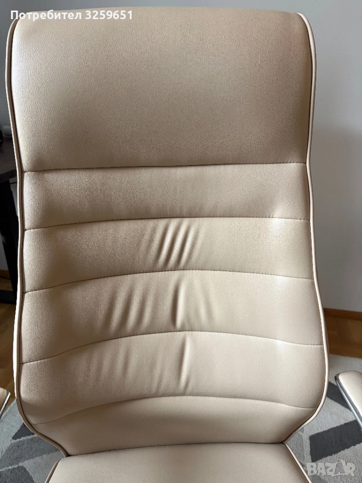 Офис стол, кожен, бежов. Без забележки или наранявания. Подходящ за конферентна зала. Лично предаване за град София.