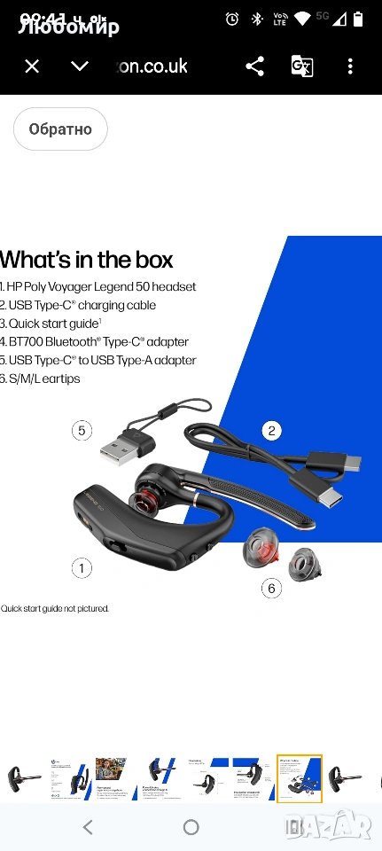 HP Poly Voyager Legend 50 - Bluetooth слушалки - Дискретен държач и 4 микрофона с шумопотискане