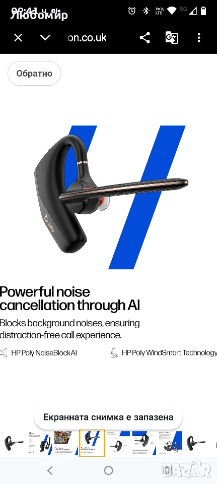 HP Poly Voyager Legend 50 - Bluetooth слушалки - Дискретен държач и 4 микрофона с шумопотискане, AI NoiseBlock и WindSmart технологии - Безпроблемна свързаност и интелигентно управление на разговорите - Комфорт през целия ден.ЯСНИ РАЗГОВОРИТЕ, КЪДЕТО И ДА ВИ ОТВЕДЕ РАБОТАТА: На бюрото, в кафенето или навън във ветровит ден, HP Poly NoiseBlockAI и WindSmart блокират нежелания шум, осигурявайки непрекъснати, висококачествени разговори, като гласът ви винаги е на преден план.