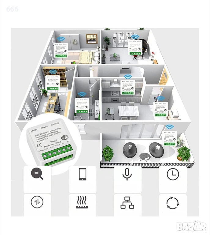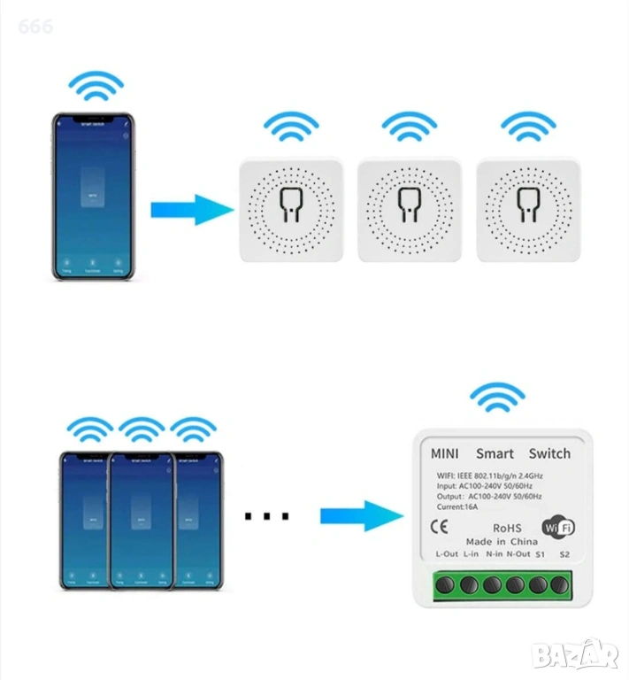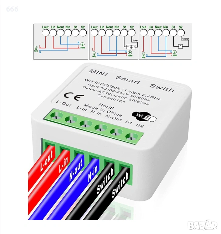 1. Практичност: Конвенционалните ключове и този интелигентен модул могат да работят независимо и могат да се управляват чрез приложение с помощта на смартфон, без да е необходим отделен хъб. 2. Свързване към верига: Може да се използва за 1 или 2 вериги (2 ключа управляват 1 лампа), просто ги свържете към един от 2-та ключа и преобразувайте свързаното устройство в интелигентно устройство (за 2 вериги). 3. Характеристики: Използвайте с приложението Tuya и Intelligent Life за пълен контрол на свързани устройства с таймери, графици и обратно броене (1, 5, 30 минути, 1 час и др.), което ви позволява да споделяте контрола със семейството си. 4. Гласово управление: Позволява гласово управление на домашни устройства за hands-free изживяване, съвместим с MINI WiFi Switch, Amazon Tap и Google Home Assistant. 5. Скрит монтаж: Подходящ за стенни кутии за ключове, лесно се скрива в скрити кутии за ключове, без да се нарушава декоративният стил, което го прави интелигентен.