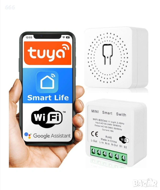 Релето работи с два гласови асистента: Google Home и Alexa.