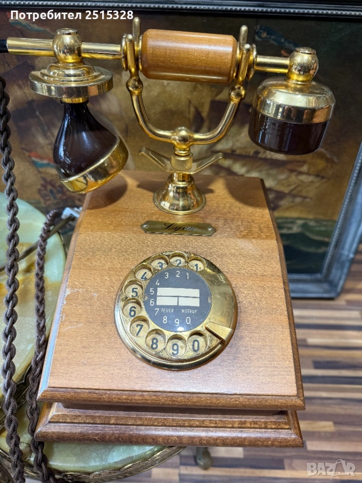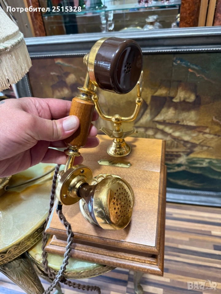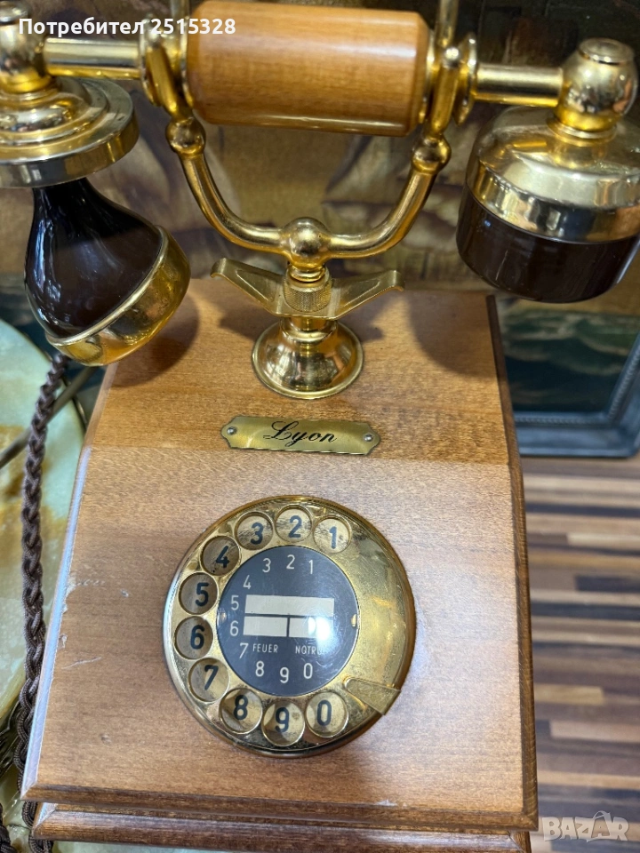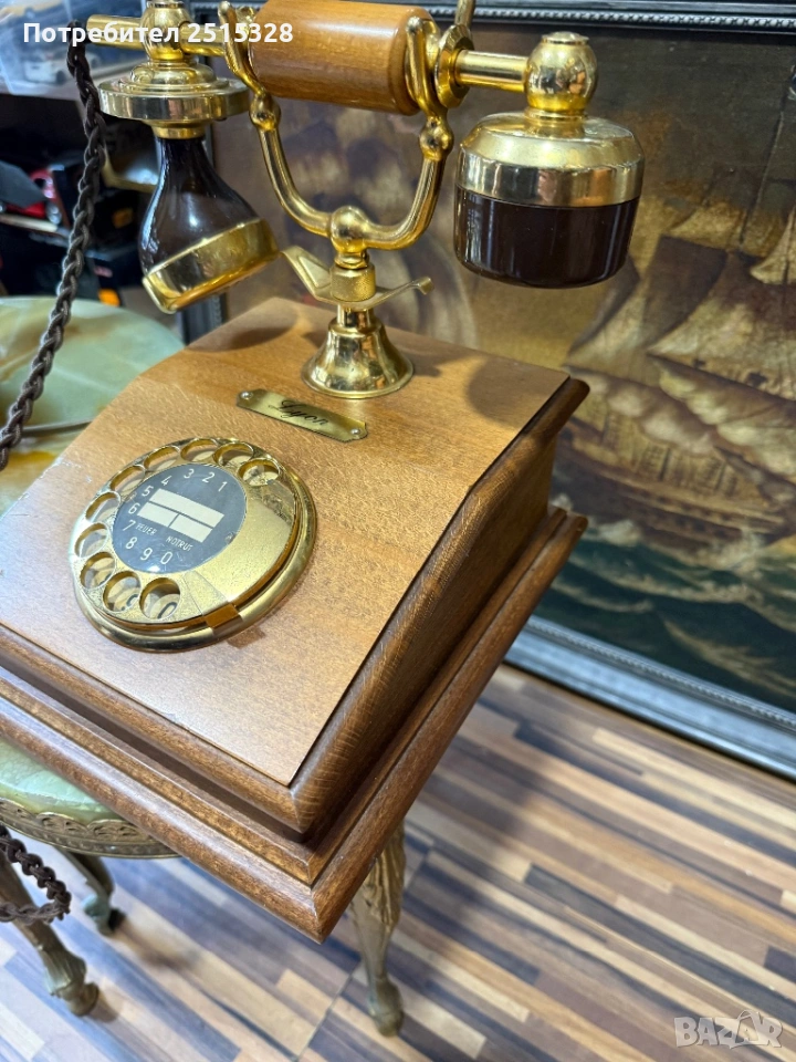 перфектно запазен ретро телефон френски дърво и месинг