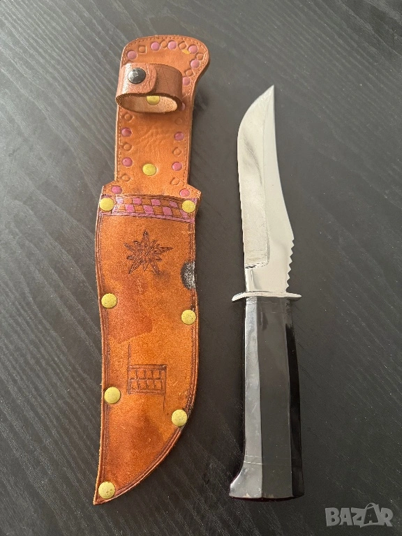 Здрав и добре балансиран нож с класическа форма. Идва с кожен калъф.