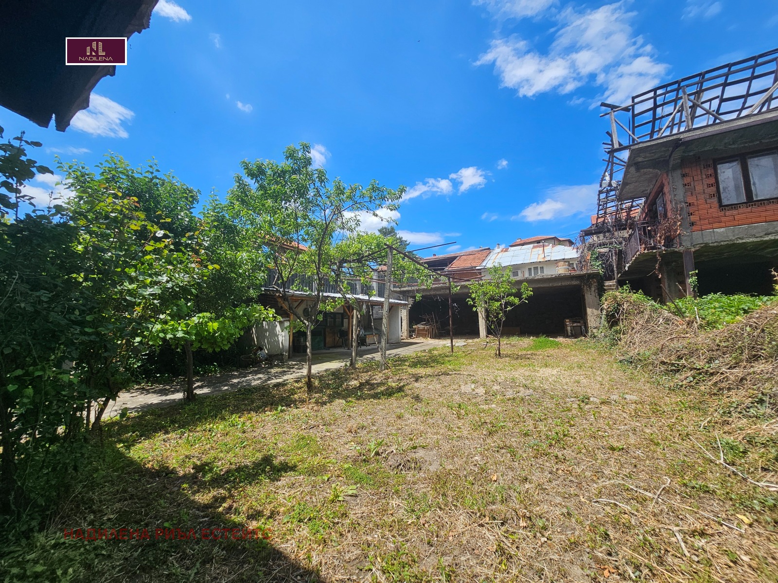 В двора има навес с BBQ, помощна постройка, възможност за допълнително застрояване на гараж.