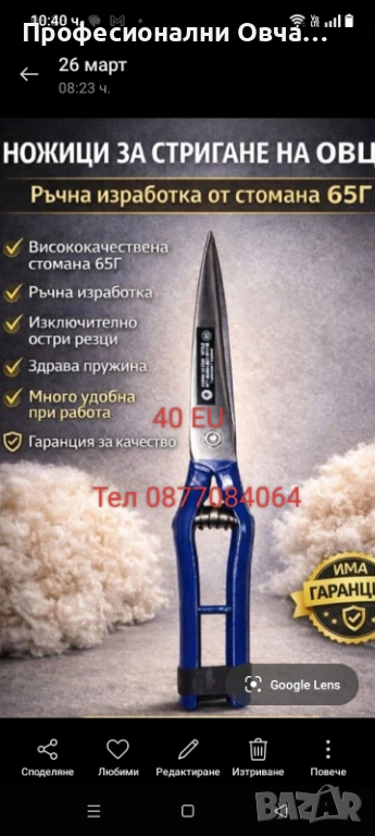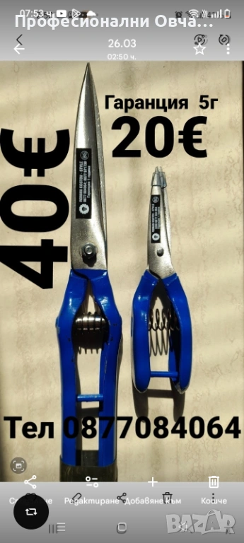 За Подстригване на Овце Кози и Конски и Говежди Опашки и др.Изработени От Стомана 65Г с Гаранция 5г. Високо Качество