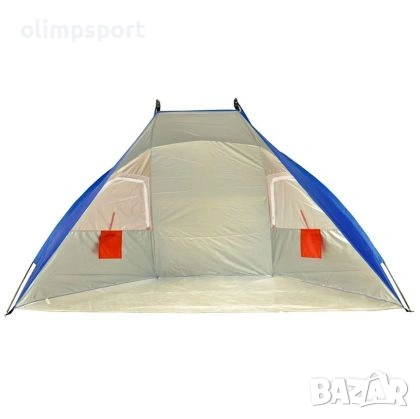 Плажна палатка (сенник) с дъно, основа трапец 270х120 см, височина 140см. Изработена от водоустойчив полиестер с 3000 мм воден стълб и UV защитен слой Rf +86. Подлепени шевове. Осигурява защита от слънце и вятър за трима възрастни или няколко деца. Подходяща за плаж, пикници сред природата или риболов. Екстри - вентлационни мрежести панели против насекоми, удобни джобове за съхранение на дребни вещи от вътрешната страна. Бързо и лесно сглобяване - обтегачите се закачат към покривалото с пластмасови скобички. Комплектът съдържа чанта за удобно съхранение и пренасяне на палатката. Тегло на палатката в чантата - 1500 г; Размери на чантата - 60хФ12см; Обтегачи от фибростъкло с диаметър 7.9мм.