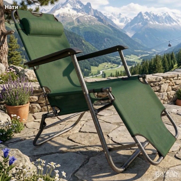 Сгъваем зелен шезлонг с възглавница - комфорт и релакс → Обява 54023560