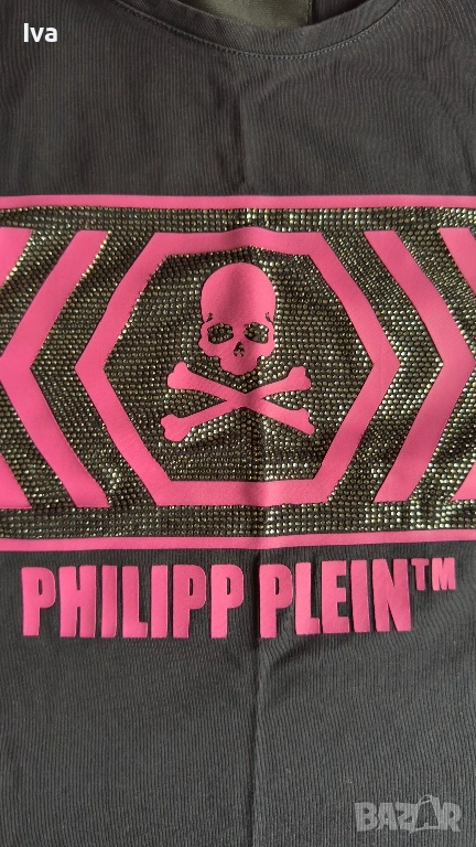 Дамска тениска Филип Плейн Philipp Plein с розов принт и камъни → Обява 54023575
