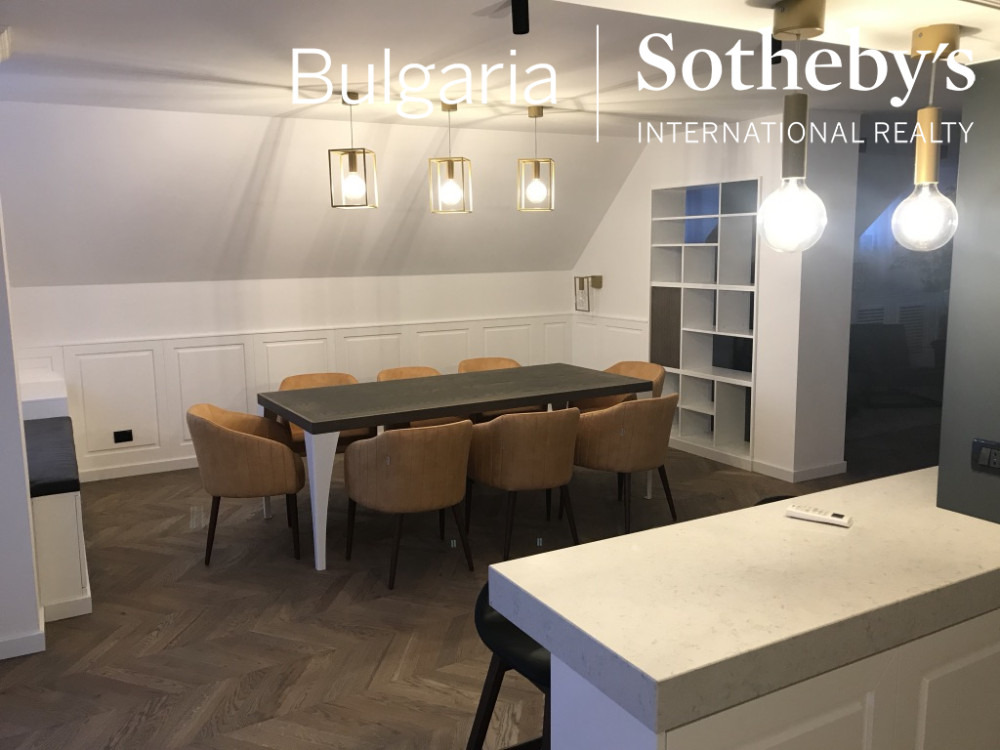 Апартаментът впечатлява с простор, функционалност, панорамни прозорци, комфортно разпределение, перфектно обзавеждане, много добре обособени зони за работа или релакс.